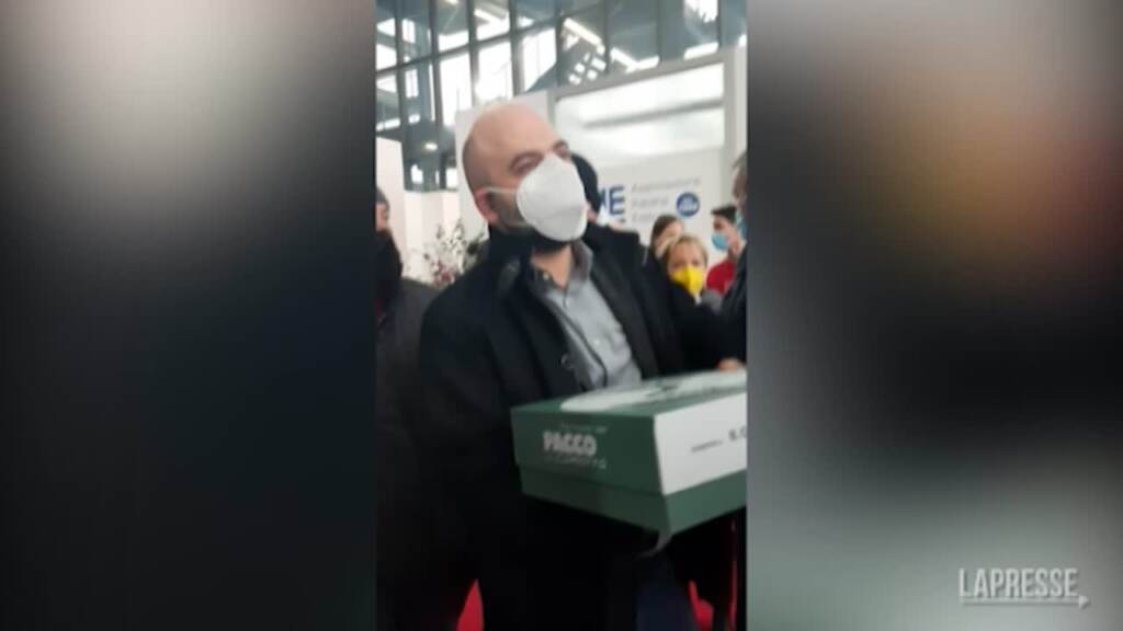 Alla Fiera della Piccola e media editoria ‘Più libri, più liberi’, in corso a Roma, Roberto Saviano ha ricevuto in regalo il Pacco alla camorra e “Onorata sanità”, la quarta storia del Commissario Mascherpa. Lo scrittore ha ricevuto il dono nello stand della Polizia di Stato, che per il secondo anno partecipa all’iniziativa ideata da Nuova cooperazione organizzata, un consorzio di cooperative sociali della provincia di Caserta che coltivano le terre sequestrate alla mafia.