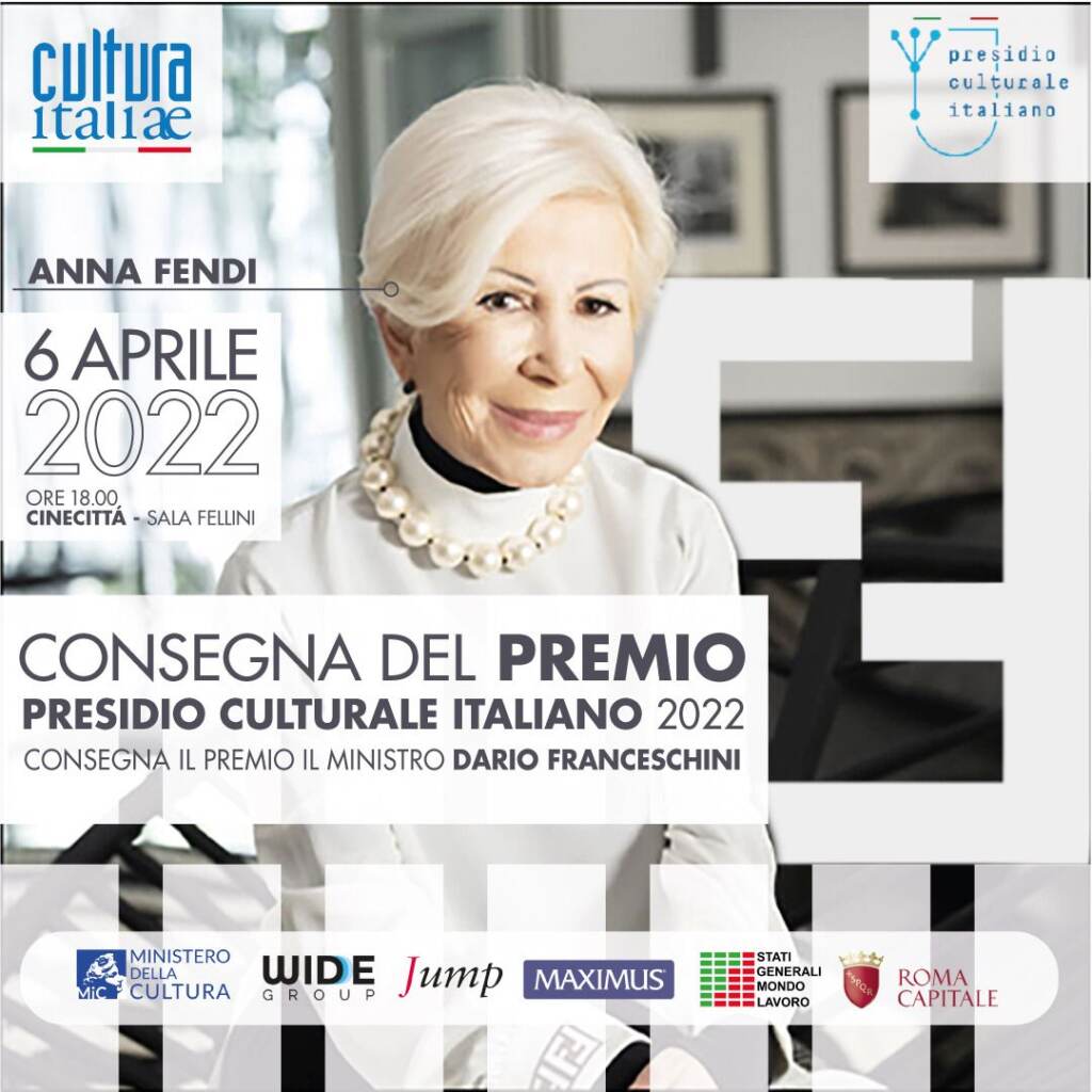 È Anna Fendi la vincitrice del premio Presidio Culturale Italiano 2022 dell’Associazione Cultura Italiae. Il premio verrà consegnato domani dal ministro della Cultura Dario Franceschini nella cornice di Cinecittà. Torna quest’anno, dopo un anno di pausa, il premio che onora chi eccelle nel mondo della cultura. Si tratta di un riconoscimento che l’associazione Cultura Italiae conferisce ogni anno alle personalità che si sono contraddistinte nel loro lavoro per ingegno, tenacia e merito al fine di conseguire l’innovazione e lo sviluppo del Paese.