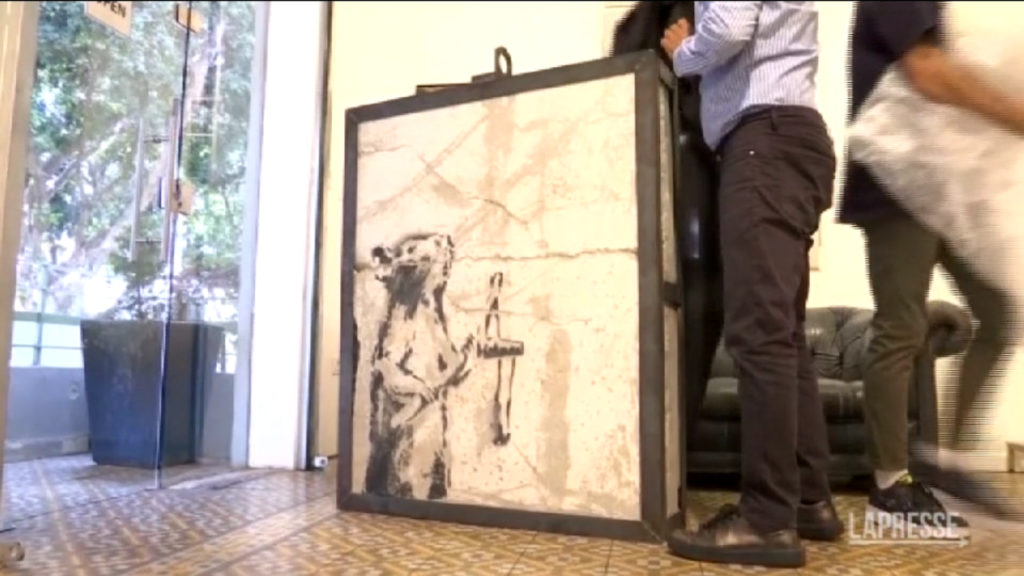 (LaPresse) È ricomparso in un’elegante galleria del centro di Tel Aviv il murale di Banksy ‘Il topo con la fionda’, disegno di protesta contro l’occupazione israeliana realizzato in segreto su un muro di cemento della Cisgiordania occupata a Betlemme, nel 2007. Poco dopo la sua realizzazione, i residenti palestinesi avevano ritagliato il dipinto e l’avevano tenuto in residenze private fino a quest’anno, quando è stato venduto da un non meglio precisato “socio palestinese” al partner della galleria di Tel Aviv, Koby Abergel. Mistero sul viaggio del blocco, che per arrivare a Tel Aviv ha passato la barriera di Israele e almeno un blocco militare, ma Abergel ha sottolineato che il trasferimento non è stato coordinato con l’esercito israeliano. Proteste del ministero del Turismo palestinese, il portavoce Jeries Qumsieh: “È un furto della proprietà del popolo palestinese. Questi erano dipinti di un artista internazionale per Betlemme e per la Palestina. Trasferirli, manipolarli e rubarli è sicuramente un atto illegale”.