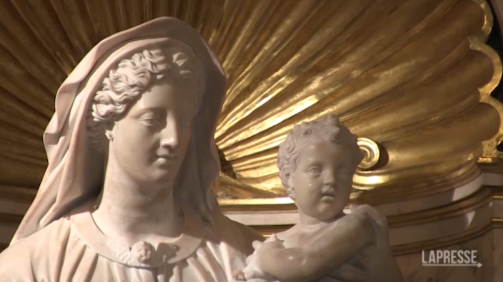 “La Madonna del Parto è una scultura meravigliosa realizzata in un unico blocco di marmo di Carrara – spiega Daniela Porro, soprintendente speciale del Comune di Roma -. Molto importante dal punto di vista storico-artistico, ma soprattuto dal punto di vista devozionale e proprio per questo è circondata da ex voto. La superficie era molto deteriorata a causa della sovrapposizione di olii, resine, polveri sottili. È stata restaurata grazie al sostegno di Intesa Sanpaolo attraverso una metodologia molto innovativa che usa batteri che mangiano letteralmente le polveri depositate nel tempo. Una metodologia messa a punto da Enea e siamo contenti di restituire alla cittadinanza un’opera meravigliosa”.