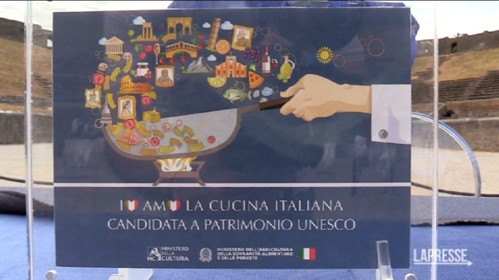 Il Ministro dell’Agricoltura e della sovranità alimentare, Francesco Lollobrigida, il Ministro della Cultura Gennaro Sangiuliano e il Ministro dell’Interno Matteo Piantedosi, hanno lanciato la candidatura Unesco della Cucina italiana alla Lista Rappresentativa del Patrimonio Culturale Immateriale dell’Umanità. L’evento si è svolto al Parco Archeologico di Pompei.