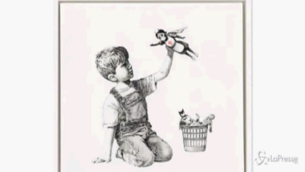 (LaPresse) Un dipinto di Banksy, celebre street artist, è stato battuto all’asta a Londra da Chrisite’s per 16,75 milioni di sterline (circa 19,45 milioni di euro). L’opera, che si intitola ‘game changer’, omaggia i sanitari e il loro lavoro durante il lockdown ed è finita all’asta durante le commemorazioni per l’anniversario del primo lockdown in Gran Bretagna. L’importo record sara donato al servizio sanitario britannico. L’opera era stimata tra i 2,5 e i 3,5 milioni di sterline (2,9-4 milioni di euro). Il record precedente di prezzo di vendita di un’opera di Banksy, “The Parliament of the Monkeys”, era 9,9 milioni di sterline (11,5 milioni di euro). Resta ignoto, per il momento, il compratore. DISTRIBUTION FREE OF CHARGE – NOT FOR SALE