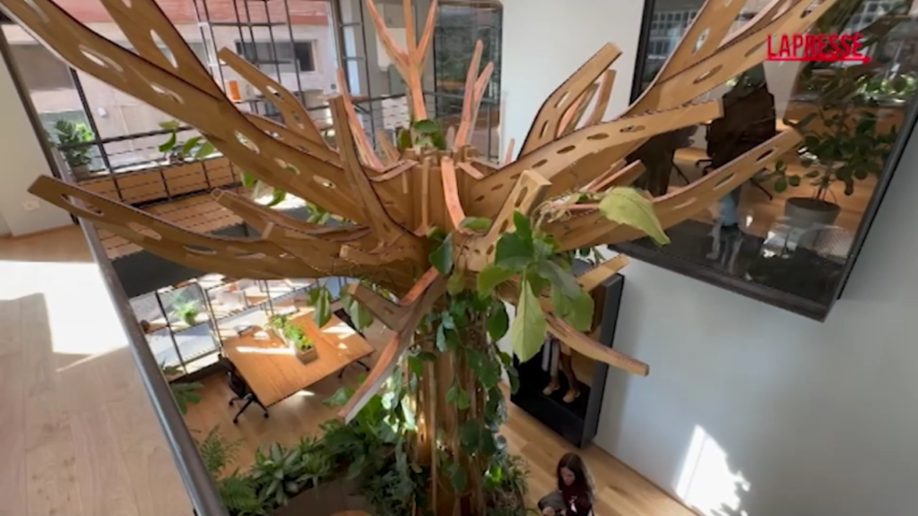 Permette la rigenerazione dell’attenzione attraverso la natura che circonda chi ci lavora grazie a 300 piante su 500 metri quadri di uffici nel cuore di Milano: si chiama The Forest ed è il concept ideato da Edileco, il primo spazio di lavoro a ricevere la certificazione di Biophilic Design in Italia. “Questo ufficio è la metafora del nostro impegno a creare un impatto sociale a partire da chi lavora con noi. La nostra mission è creare benessere sociale, ambientale ed economico. Partendo dalla Valle d’Aosta siamo cresciuti molto e abbiamo iniziato ad avere necessità di espanderci oltre i confini regionali, Milano è la porta dell’architettura e del design di tutta Europa, non solo dell’Italia”, spiega a LaPresse Davide Trapani, presidente Edileco. Lo spazio si sviluppa intorno al grande albero posizionato nel blocco centrale come elemento di giunzione cielo terra. Un’opera artistica dalla forte caratterizzazione ma non solo: il tronco e i rami in rovere celano al loro interno l’impianto di ventilazione meccanica centralizzata che veicola l’aria calda dall’alto verso i piani sottostanti. “Il contatto con la natura permette il recupero più efficace dello stress e attiva la funzione della rigenerazione dell’attenzione. Siamo passati dalla ricerca sperimentale dell’Università valdostana, portando la natura della nostra regione dentro un ufficio del centro di Milano: ci aspettiamo che in 18 mesi le persone che lavorano qui aumentino la produttività e anche un maggior desiderio di andare a lavorare perché piace il posto dove operano”, racconta il professor Giuseppe Barbiero, Direttore del Laboratorio di Ecologia Affettiva (GREEN LEAF), Università della Valle d’Aosta.