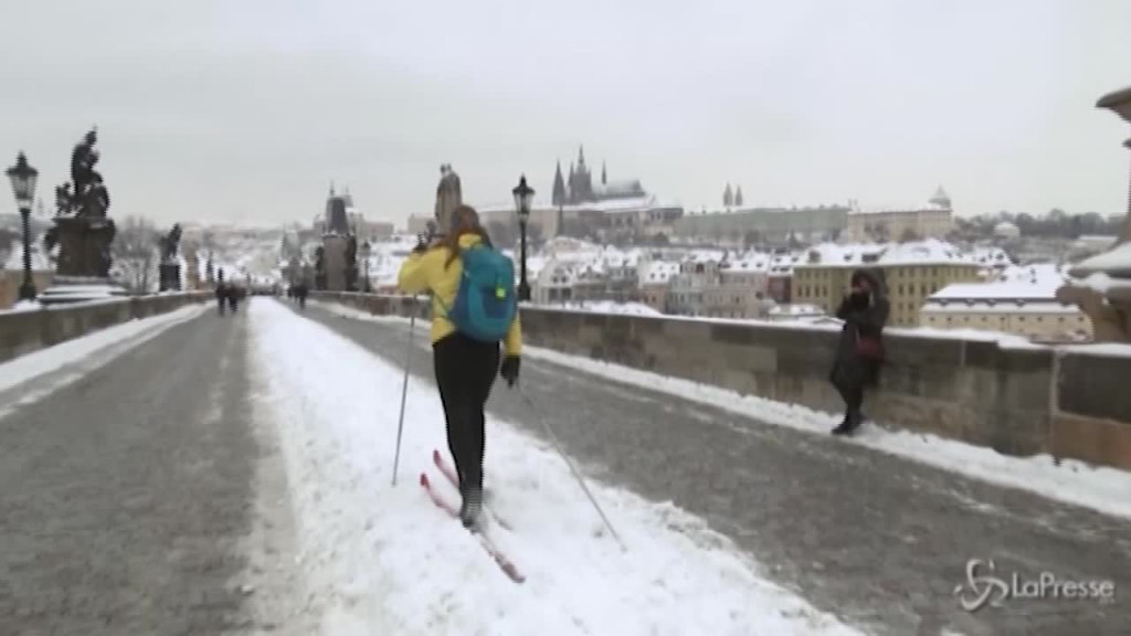 (LaPresse) Gli sciatori di Praga hanno trasformato un ponte della città in un inusuale pista da sci, per evitare di perdersi le gioie di una sciata vista la chiusura degli impianti in Repubblica Ceca per il covid. Una dozzina di persone si è ritrovata sul Charles Bridge, dove si erano posati diversi centimetri di neve: “Avviserò mio nipote” scherza una cittadina che si è ritrovata nel bel mezzo della pista da sci improvvisata.