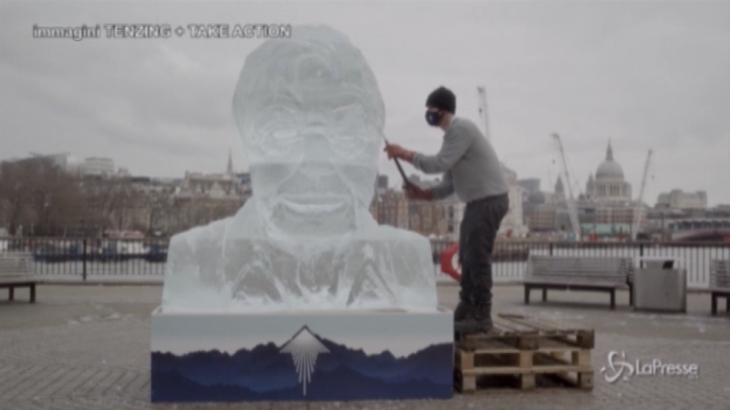 (LaPresse) Una gigantesca scultura di ghiaccio raffigurante David Attenborough è stata esposta al South Bank di Londra, per sensibilizzare sul cambiamento climatico. L’installazione temporanea – un busto della testa e delle spalle del naturalista veterano – misura cinque metri quadrati e vuole dimostrare lo scioglimento del ghiaccio causato dalle emissioni di carbonio, come spiegato dalla società di bevande energetiche Tenzing, che ha eretto la scultura nell’ iniziativa di sostenibilità Take Action. Attenborough ha ispirato la campagna quando ha pubblicato un video in cui ha detto che salvare il pianeta è ora anche una “sfida di comunicazione”. La scultura può essere visualizzata online tramite i canali dei social media dell’azienda.