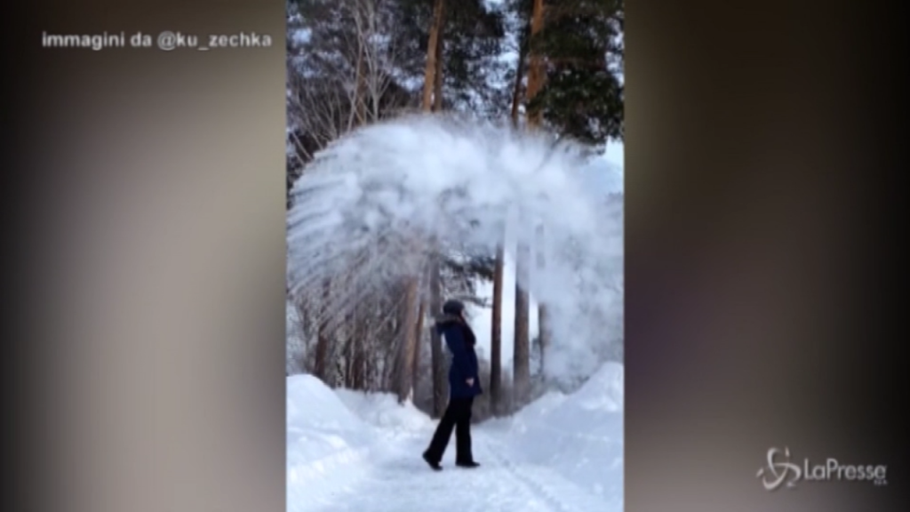 (LaPresse) Spopola in Russia la #dubakchallenge, o #freezingcoldchallenge, che invita le persone filmarsi mentre spruzzano in aria acqua calda, che incontrando le rigide temperature russe – arrivate anche sotto i 30 gradi – crea un effetto quasi magico. L’acqua calda, infatti, una volta lanciata nell’aria si congela e produce un’abbagliante nuvola di ghiaccio che fluttua per qualche istante nell’aria. Alcuni utenti di social media hanno poi portato la sfida ad un ulteriore livello, mostrando spaghetti o vestiti sospesi a mezz’aria proprio a causa del freddo.
