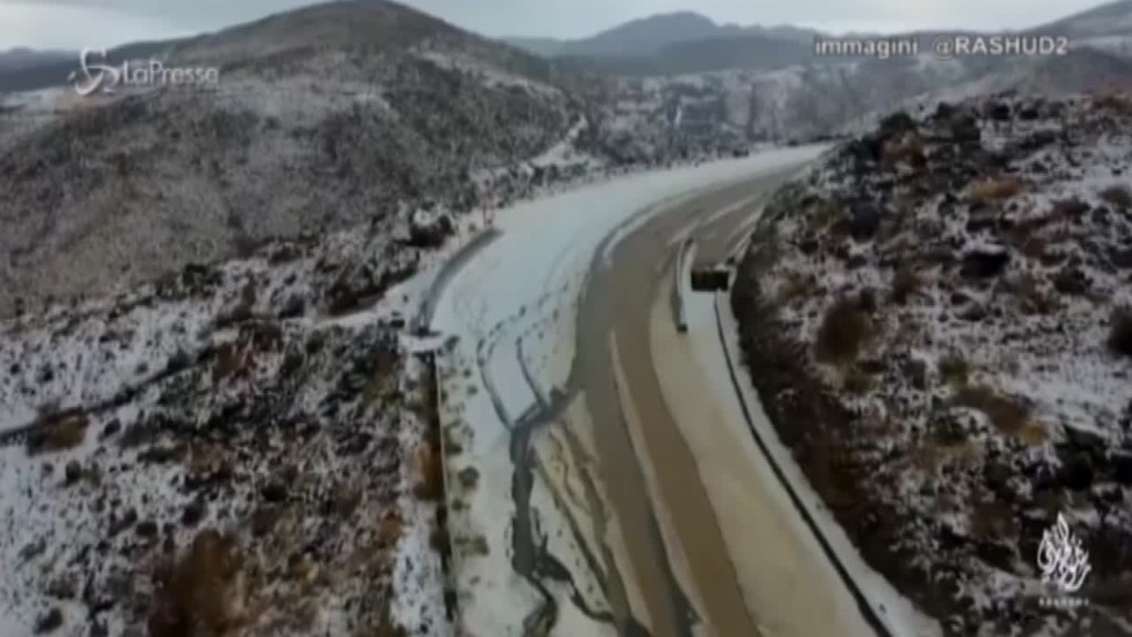 La neve ha imbiancato anche l’Arabia Saudita, coprendo strade e montagne nella regione di Abha. Si tratta di una zona, nel sud ovest del Paese, dove di solito le estati sono lunghe, calde, aride, mentre gli inverni sono solitamente brevi, freschi, asciutti e prevalentemente sereni.