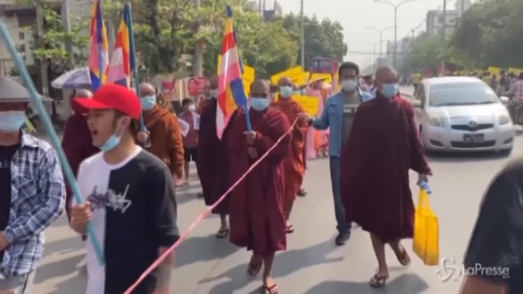Una nuova manifestazione di protesta contro il colpo di stato messo in atto dai militari in Myanmar è andata in scena venerdì a Mandalay. In corteo anche monaci e monache buddiste con cartelli che chiedono la liberazione della leader di opposzione Aung San Suu Kyi e invocano l’intervento degli Stati Uniti.