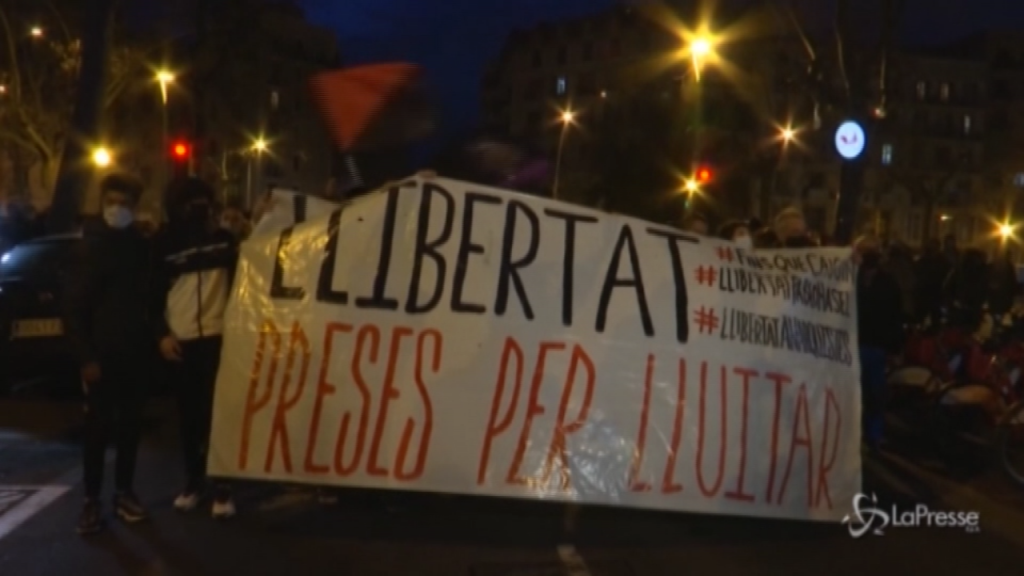 Diverse centinaia di manifestanti hanno protestato a Barcellona chiedendo nuovamente il rilascio di Pablo Hasél e dei diversi sostenitori arrestati in queste settimane di scontri. ll rapper sta scontando nove mesi per incitamento al terrorismo.