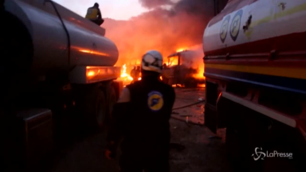 Gli attacchi aerei in diverse località nel nord-ovest della Siria, vicino al confine con la Turchia, hanno ucciso almeno una persona. Diversi camion e anche il deposito di un cementificio hanno preso fuoco. Nel video le immagini delle fiamme e degli uomini al lavoro per domarle.