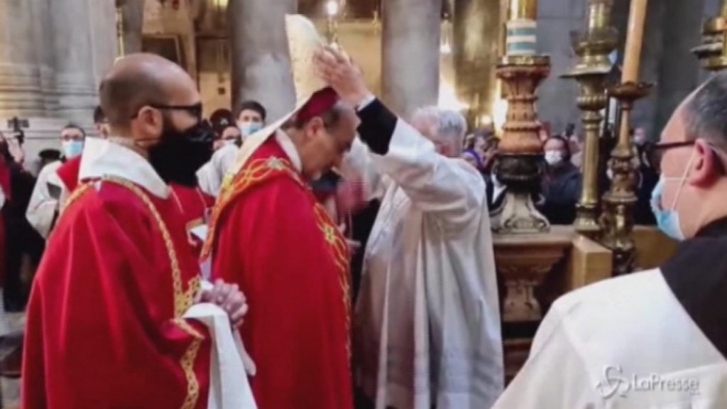 Nella basilica del Santo Sepolcro a Gerusalemme la suggestiva cerimonia dei cattolici per la Domenica delle Palme che segna l’inizio della Settimana Santa che precede la Pasqua. Il patriarca latino di Gerusalemme, Pierbattista Pizzaballa ha distribuito fronde di palma al clero e ai credenti prima di condurli in una processione che circonda l’edicola, il luogo in cui fu deposto il corpo di Gesù dopo essere stato rimosso dalla croce. Tutta la cerimonia si è tenuta con le dovute restrizioni anti-covid l’obbligo delle mascherine. Secondo la Bibbia, la Domenica delle Palme segna il giorno in cui Gesù tornò a Gerusalemme prima della sua crocifissione, accolto da folle esultanti che agitavano rami di palma.