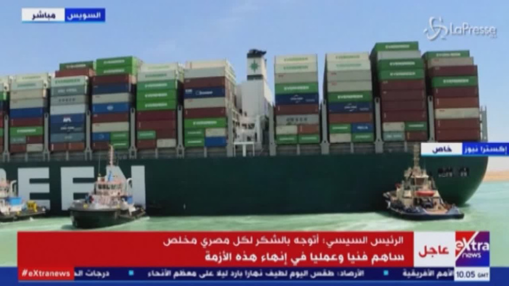 Gli ingegneri hanno fatto tornare parzialmente a galla la nave Ever Given che da martedì blocca il canale di Suez, dopo essersi incagliata. I rimorchiatori sono in azione per trainare la portacontainer verso i Laghi amari del Canale mentre i dragatori stanno rimuovendo il fango e la sabbia intorno al cargo.