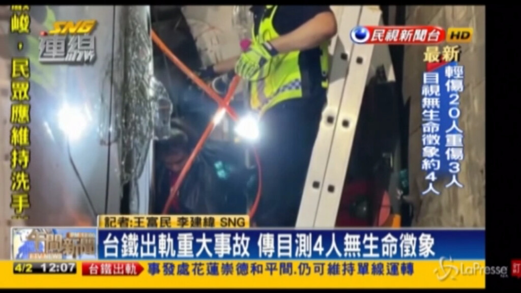 (LaPresse) – E’ di 34 morti e dozzine di feriti il bilancio fornito dalla polizia locale in merito al deragliamento di un treno a Taiwan. Le ricerche sono ancora in corso. L’incidente ferroviario è accaduto nei pressi di Toroko Gorge, zona turistica sulla costa orientale, attorno alle 9 del mattino ora locale. Secondo quanto riportato dai media a bordo c’erano 350 passeggeri. La tragedia sarebbe accaduta perché un camion sarebbe caduto sui binari dalla strada soprastante ed il treno, che usciva da una galleria, si sarebbe schiantato contro il mezzo.