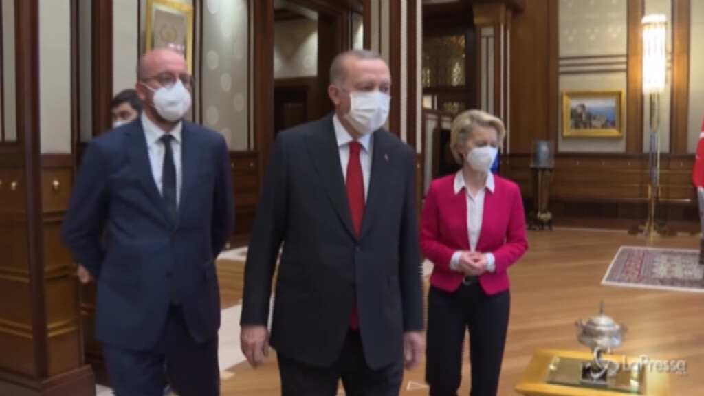 (LaPresse) Incontro ad Ankara tra il presidente turco, Recep Erdogan, e i vertici dell’Ue Ursula Von der Leyen e Charles Michel, rispettivamente presidente della Commissione e del Consiglio dell’Unione europea. Un meeting che arriva a distanza di settimane dalla road map delineata dall’Ue con l’obiettivo di rilanciare i rapporti tra Bruxelles e il Paese guidato da Erdogan. Sul tavolo diversi temi tra cui Siria e Libia, oltre alla situazione nel Mediterraneo e la gestione dei migranti senza dimenticare la questione diritti umani.