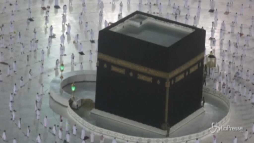 Prima preghiera all’alba a La Mecca dei pellegrini musulmani giusti per celebrare il mese di Ramadan in Arabia Saudita. Attorno alla Kaaba, il sito sacro che si trova alla Mecca, si sono radunate centinaia di persone, distanziate per via del Covid, indossando i tradizionali abiti bianchi. Solo le persone che sono state vaccinate (o che hanno recentemente contratto il Covid) hanno avuto accesso al sito sacro.