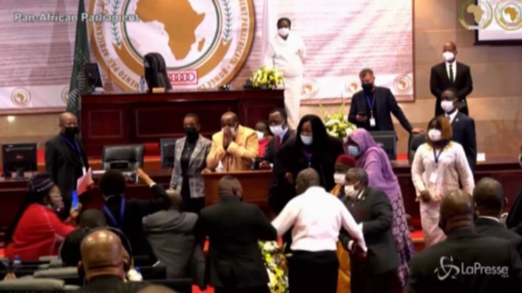 Caos durante una riunione del parlamento dell’Unione africana: i legislatori si sono scontrati tra di loro e qualcuno ha gridato, durante la zuffa, che c’erano persone armate di pistole nella stanza. La riunione era in corso a Midrand, in Sudafrica: lo scontro è iniziato dopo che i membri erano in disaccordo del nuovo presidente del parlamento panafricano. Le scene sono state trasmesse dall’emittente nazionale sudafricana SABC. La sessione è stata sospesa.