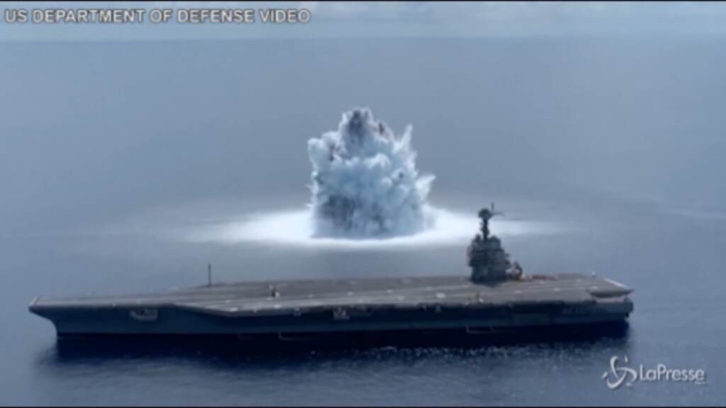 (LaPresse) La portaerei Gerald R. Ford dell’esercito americano viene messa alla prova con un’enorme esplosione. Il dipartimento della Difesa Usa ha pubblicato il video del test eseguito nell’Oceano Atlantico venerdì scorso. L’onda d’urto è potentissima e ha riprodotto le condizioni in cui la nave da guerra potrebbe potenzialmente trovarsi durante una battaglia.