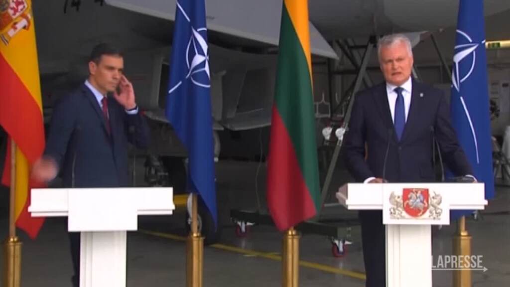 (LaPresse) La conferenza stampa congiunta del primo ministro spagnolo Pedro Sanchez e del presidente lituano Gitanas Nauseda alla base di Siauliai è stata interrotta a causa di un allarme legato a un aereo russo non identificato nello spazio aereo lituano. Lo ha riferito El Pais. Nella base in Lituania si trovano militari spagnoli della missione Nato. Mentre parlava Nauseda è stato circondato da un gruppo di soldati, che hanno chiesto ai due leader di lasciare l’hangar. La conferenza congiunta è poi ripresa.