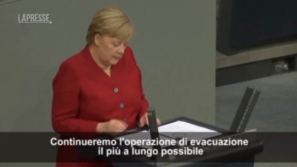 (LaPresse) “Continueremo l’operazione di evacuazione il più a lungo possibile, anche per consentire agli afghani che hanno lavorato con noi per la sicurezza, la libertà, lo stato di diritto e lo sviluppo, di lasciare il Paese”. Così la cancelliera tedesca, Angela Merkel, parlando al Bundestag sulla crisi in Afghanistan. Poi sulla fine del ponte aereo che il presidente Usa Joe Biden ha confermato per il 31 agosto, Merkel ha aggiunto: “La fine del ponte aereo non deve significare la fine degli sforzi per proteggere i dipendenti locali afghani e aiutare quegli afghani che sono stati messi ancora più in difficoltà dall’avanzata dei talebani”.