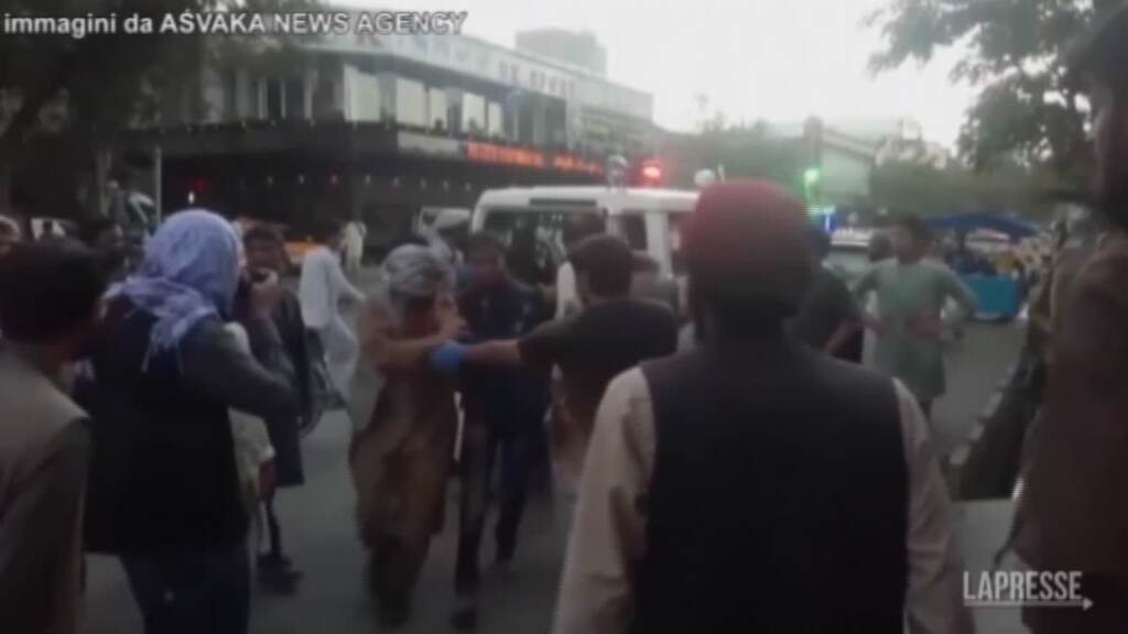 (LaPresse) Primi soccorsi dopo l’attentato suicida kamikaze vicino all’aeroporto di Kabul, in Afghanistan. Le due esplosioni avrebbero ucciso almeno 13 persone, secondo i primi bilanci, tra cui alcuni bambini. Nel video ottenuto dall’Associated Press alcuni feriti vengono portati verso gli ospedali in città.