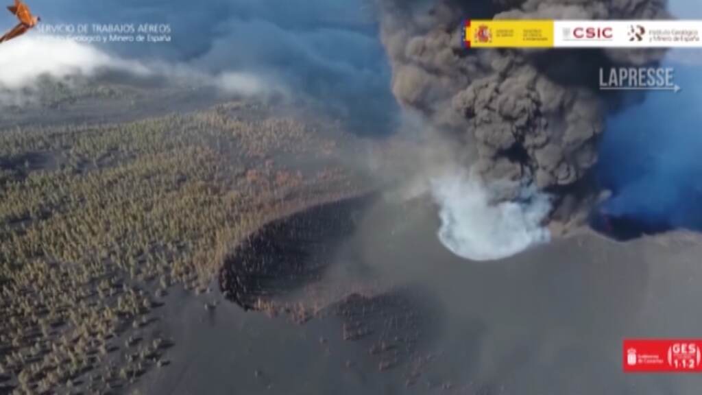 (LaPresse) Una enorme nube densa e grigia si leva dal cratere del Cumbre Vieja, mentre proseguono le colate laviche in cima al vulcano. Le immagini, girate lunedì sull’isola di La Palma, sono state diffuse dall’Istituto spagnolo di geologia. Le autorità locali hanno fatto sapere che stanno rafforzando la sorveglianza del vulcano in eruzione, dopo che parte del cratere è crollato e ha scatenato una cascata di lava più liquida e in rapido movimento. Il cratere era “come una diga”, ha spiegato un funzionario.
