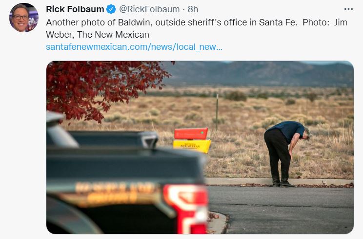 Another photo of Baldwin, outside sheriff’s office in Santa Fe. Photo: Jim Weber, The New Mexicanhttps://t.co/I7re4PenOE pic.twitter.com/DZHUGNlsoz
