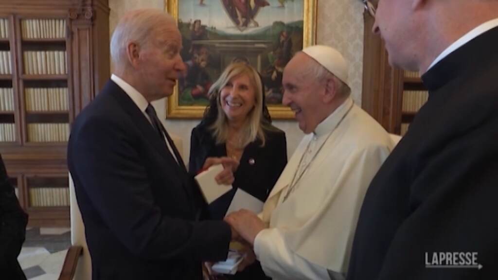 (LaPresse) – “Sei il più grande guerriero per la pace che abbia mai incontrato”. Lo ha detto il presidente Usa Joe Biden a Papa Francesco durante l’incontro in Vaticano. Biden ha donato al Pontefice una moneta militare con il sigillo degli Stati Uniti da un lato e quello del Delaware dall’altra, la 261a unità “con cui mio figlio ha servito”, ha spiegato il presidente Usa dicendo che il defunto figlio Beau avrebbe voluto che “ti facessi questo dono”. “La tradizione vuole, e sto scherzando su questo, che se la prossima volta che ci vediamo, non ce l’hai, devi comprare da bere”, ha detto Biden, riferendosi alla moneta. Aggiungendo, “sono l’unico irlandese che tu abbia mai incontrato a non aver mai bevuto”. Papa Francesco ha riso e ha risposto “Gli irlandesi hanno portato il whisky”.