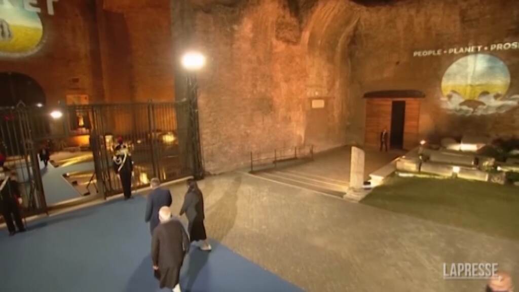Dopo aver concluso la la seconda sessione dei lavori al G20 di Roma, i leader mondiali hanno lasciato la Nuvola e si sono diretti alle Terme di Diocleziano. La visita culturale è stata guidata dal premier Mario Draghi.