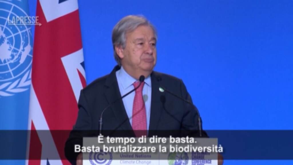 (LaPresse) Il segretario generale dell’Onu, Antonio Guterres, ha esortato i leader presenti alla Cop26 ad agire in fretta e in modo sostanziale per rafforzare gli impegni sul clima. “È tempo di dire basta. Basta brutalizzare la biodiversità, basta ucciderci con il carbonio, basta trattare la natura come la nostra toilette”, ha dichiarato Guterres secondo cui “i recenti annunci sull’azione per il clima potrebbero dare l’impressione che siamo sulla buona strada per cambiare le cose, questa è un’illusione”.