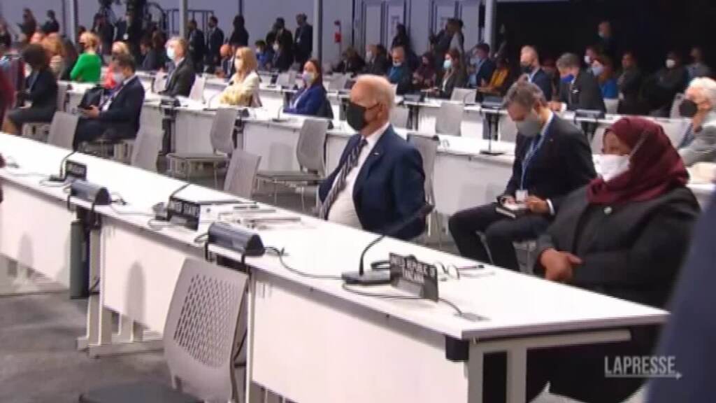 (LaPresse) Breve ‘pisolino’ per il presidente degli Stati Uniti Joe Biden, durante gli interventi dei leader del mondo a Glasgow in occasione della Cop26. Durante i discorsi di apertura, Biden, seduto nell’auditorium con davanti una tazza di caffè è stato ripreso mentre ha chiuso per qualche minuto gli occhi. Poco dopo, il presidente Usa è poi salito sul palco per il suo speech.