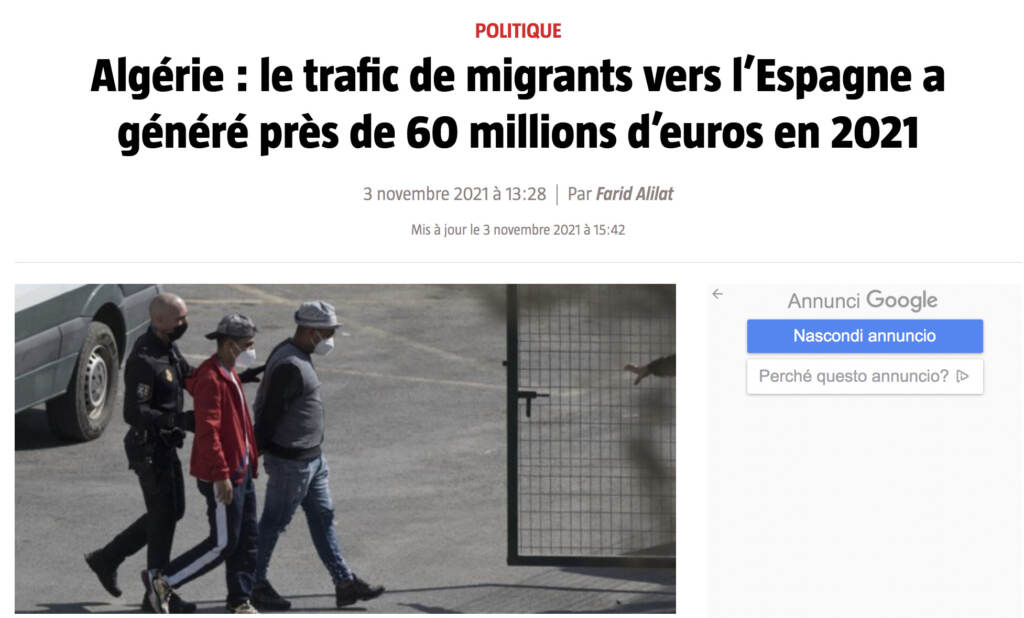 “Da diversi mesi gli arrivi di migranti algerini in Spagna sono in aumento. Il traffico, che è diventato più “professionale”, sta generando milioni di euro di profitti sulle spalle di chi parte”, ha detto la rivista panafricana.