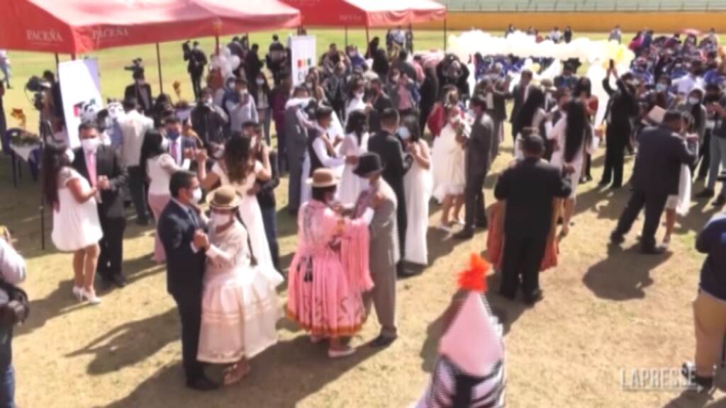 (LaPresse) – Trenta coppie si sono sposate sabato a La Paz, in Bolivia, in un matrimonio collettivo celebrato sul campo di un piccolo stadio. Un modo per ridurre i costi della cerimonia, che è stata offerta dalle autorità locali della capitale, che ha messo a disposizione champagne e un gruppo musicale. Molti degli sposi avevano rimandato per lungo tempo le nozze per le restrizioni anti-Covid.