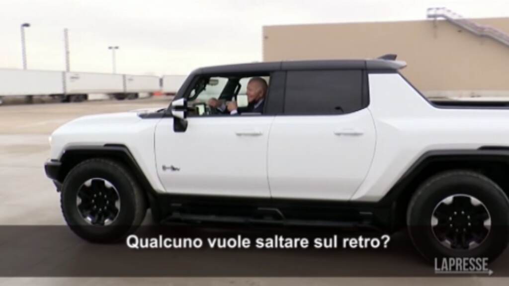 (LaPresse) Divertente siparietto per il presidente americano Joe Biden durante la visita allo stabilimento della General Motors di Detroit che produce veicoli elettrici. Il capo della Casa Bianca ha provato un GMC Hummer elettrico dal prezzo di partenza di 108.700 dollari. Pochi minuti a bordo del super pickup per Biden che è apparso entusiasta alla guida del superbolide.