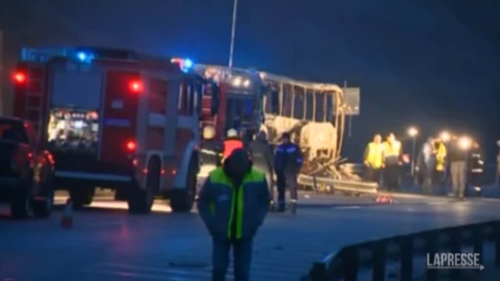 (LaPresse) – Un autobus turistico proveniente dalla Macedonia del Nord si è schiantato e ha preso fuoco sull’autostrada Struma in Bulgaria. L’incidente è avvenuto intorno alle 3 di mattina. Sono morte 45 persone, tra cui 12 bambini. A bordo c’erano un totale di 52 persone a bordo dell’autobus quando si è schiantato.
