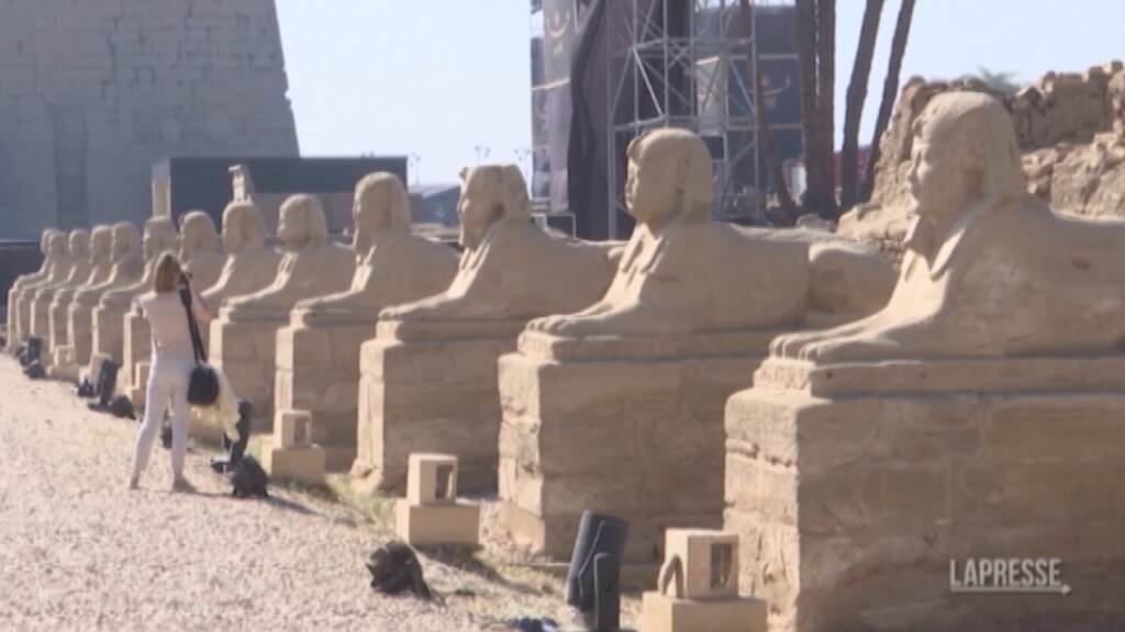 (LaPresse) I turisti visitano il viale delle Sfingi di Luxor, recentemente rinnovata, che risale a 3.000 anni fa. L’antica passeggiata collega i famosi templi di Karnak e Luxor in quella che era la città di Tebe. Si ipotizza che proprio quello fosse il percorso che i pellegrini percorrevano per visitare i templi e rendere omaggio alle loro divinità.