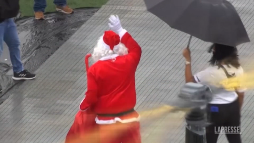 (LaPresse) Un Babbo Natale ha visitato la favela di Vila Cruzeiro a Rio arrivando in elicottero per distribuire di cibo. L’ONG che ospita l’evento, Unified Favelas Central, lavora nelle favelas brasiliane da oltre 20 anni. Il CUFA ha organizzato giovedì 200 eventi simili in tutto il Brasile con Babbo Natale di colore, che ha salutato i bambini.