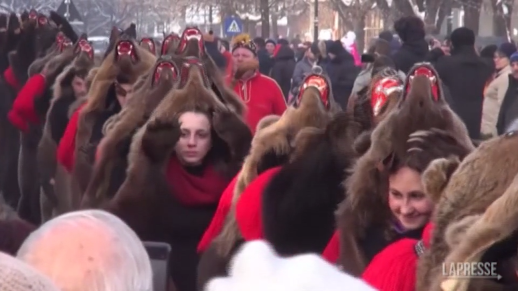 A Comănești, cittadina della Romania nordorientale, c’è una antica tradizione: centinaia di persone si vestono da orsi – con costumi realizzati con vere pellicce e le teste degli animali attaccate – cantando e ballando per tenere lontano il male.
