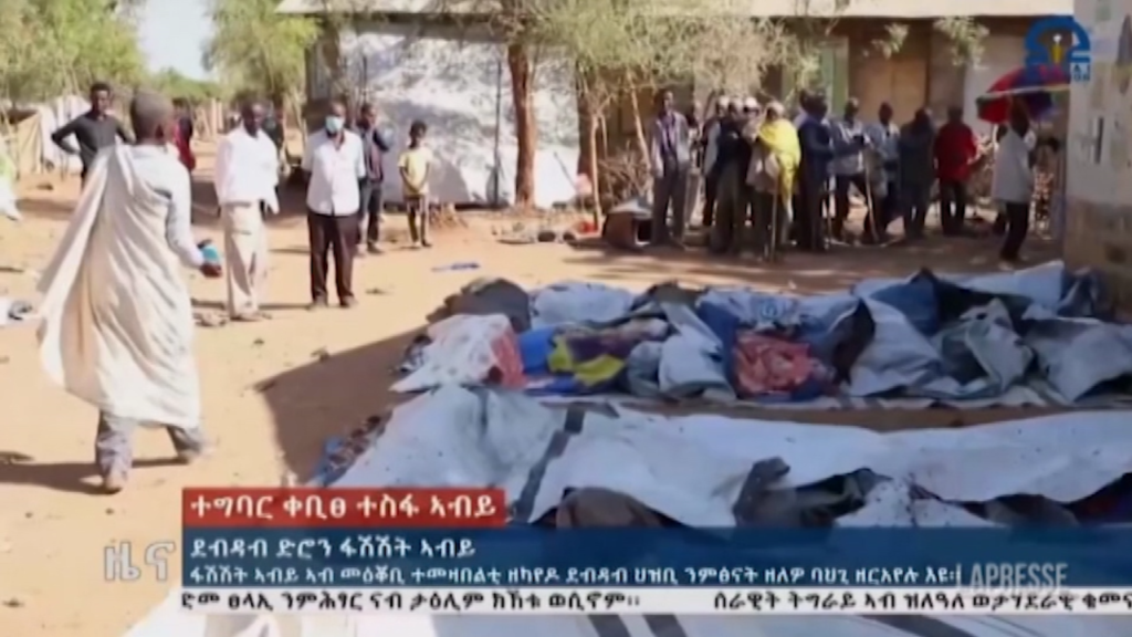 (LaPresse) Il 10 gennaio Tigray TV ha rilasciato le immagini del raid condotto in Etiopia sulla regione, che ha provocato la morte di 56 persone. Nel video si vedono decine di vittime. A dicembre il conflitto è peggiorato, quando le forze tigrine che combattono il governo etiope sono arrivate nei pressi della capitale, Addis Abeba. Un’offensiva con i droni li ha respinti. Si stima che decine di migliaia di persone siano morte nel conflitto scoppiato nel novembre 2020 tra le forze dell’Etiopia e quelle tigrine.