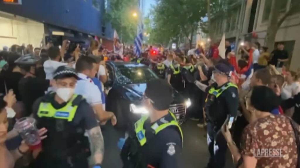 (LaPresse) I fan e supporter di Novak Djokovic si sono radunati attorno all’auto del tennista serbo mentre lasciava l’ufficio dei suoi avvocati a Melbourne. Si sono registrate tensioni tra la polizia e i tifosi: Djokovic ha vinto una battaglia in tribunale, poiché la Corte ha annullato la decisione di cancellargli il visto che era stata presa dal governo. Djokovic non è vaccinato contro il Covid-19 e ha presentato un’esenzione medica, giudicata insufficiente dal governo australiano, che ora ha minacciato di cancellargli il visto una seconda volta. “Free Novak” è il grido che si è alzato dalla folla di tisofi radunatasi in strada.