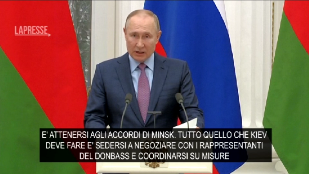 (LaPresse) – Il presidente russo Vladimir Putin ha affermato che, con il leader bielorusso Alexander Lukashenko, hanno discusso della situazione nel Donbass, che attualmente si sta aggravando. “Sfortunatamente, in questo momento stiamo assistendo a un aggravamento della situazione nel Donbas”, ha detto Putin dopo i colloqui. “Abbiamo detto con il leader bielorusso che la chiave per il ripristino della pace civile in Ucraina è l’attuazione degli accordi di Minsk. Tutto ciò che Kiev deve fare è sedersi al tavolo dei negoziati con i rappresentanti del Donbass e concordare misure politiche, militari, economiche e umanitarie per porre fine al conflitto”, ha aggiunto Putin.