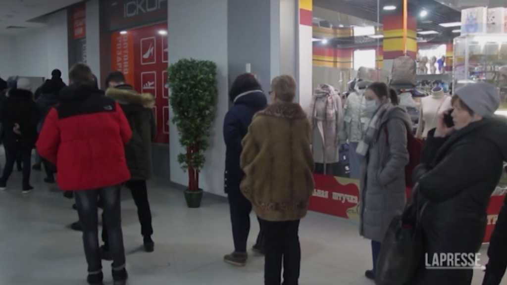 Lunghe code ai bancomat nella città di Donetsk, una delle repubbliche separatiste della regione del Donbass. Cresce la tensione nella zona dopo che i leader filo russi hanno ordinato una mobilitazione generale e sono iniziati scontri con le forze ucraine. Migliaia di civili in fuga.