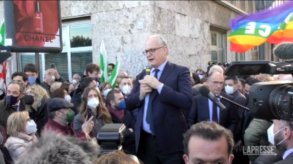 “Oggi è una giornata veramente cupa. L’angoscia è forte e noi siamo qui a esprimere la nostra più ferma condanna nei confronti di una aggressione ingiustificata. Roma e l’Italia condannano la guerra e sono con il popolo ucraino”. Lo ha dichiarato il sindaco di Roma, Roberto Gualtieri, al sit in organizzato dal Pd davanti all’ambasciata russa. “Ci stringiamo al popolo ucraino e chiediamo che le armi si fermino. Oggi il Colosseo si illuminerà dei colori della bandiera dell’Ucraina e invitiamo tutte le romane e i romani domani a fiaccolata per la pace”, ha aggiunto Gualtieri.