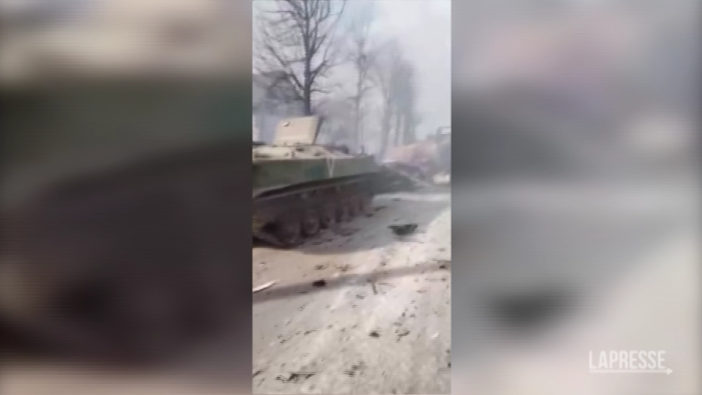 (LaPresse) Un video circolato sui social, e verificato da Associated Press, mostra cosa è rimasto degli armamenti russi dopo una violenta guerriglia a Bucha, sobborgo di Kiev, in Ucrainia. Il convoglio russo avrebbe sofferto gravi perdite. Si tratta di uno dei primi video diffusi della guerriglia urbana tra le truppe russe e ucraine alle porte della capitale. In sottofondo si sente qualcuno raccontare cosa si vede nelle immagini.