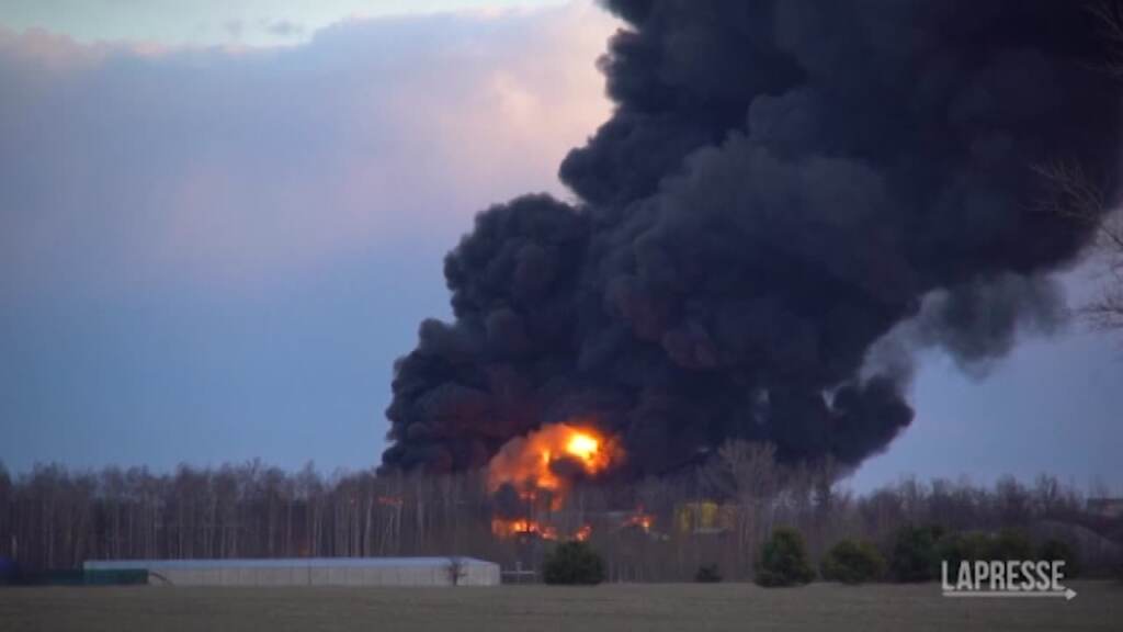 (LaPresse) Un deposito di petrolio, nel nord dell’Ucraina, ha preso fuoco domenica, nei pressi della base aerea di Vasylkiv, dove infuriano intensi combattimenti, secondo quanto riferito dal sindaco della citta. Un’enorme colonna di fumo nero si è levata in cielo: secondo testimoni sul posto il deposito sarebbe stato colpito con un missile. “L’esplosione è stata enorme”, ha detto Oleksii Sokolets, residente a Vasylkiv.