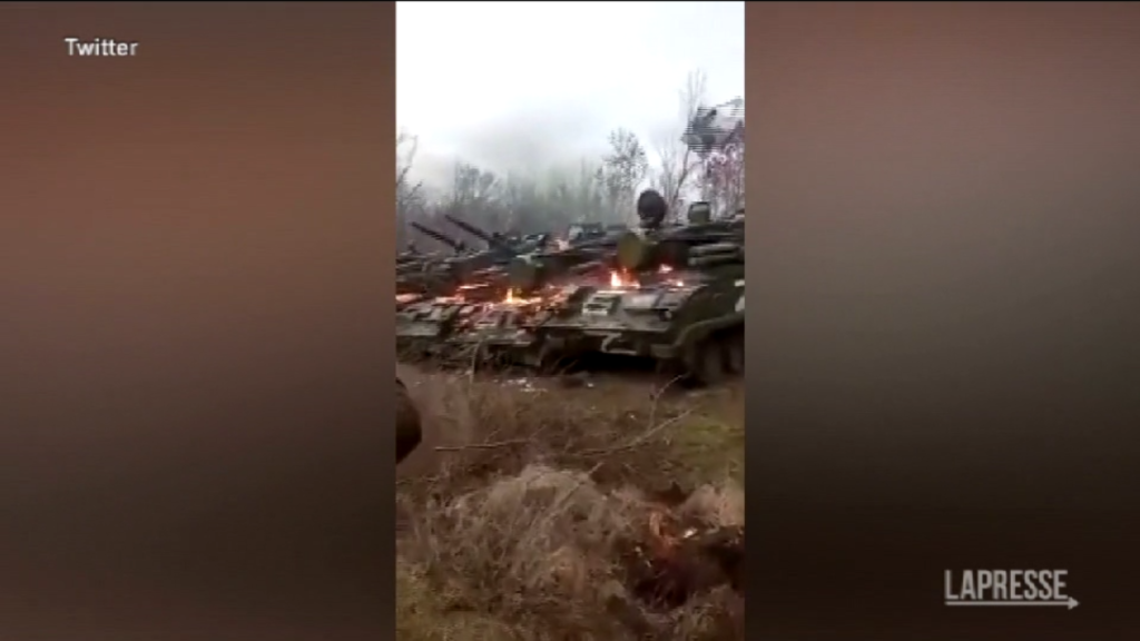 Carri armati russi abbandonati e in fiamme. Lo si vede nel video girato da alcuni residenti di Mykolaiv nell’Ucraina meridionale, vicino al confine con l’oblast di Odessa. Le immagini stanno facendo il giro dei social. DISTRIBUTION FREE OF CHARGE – NOT FOR SALE