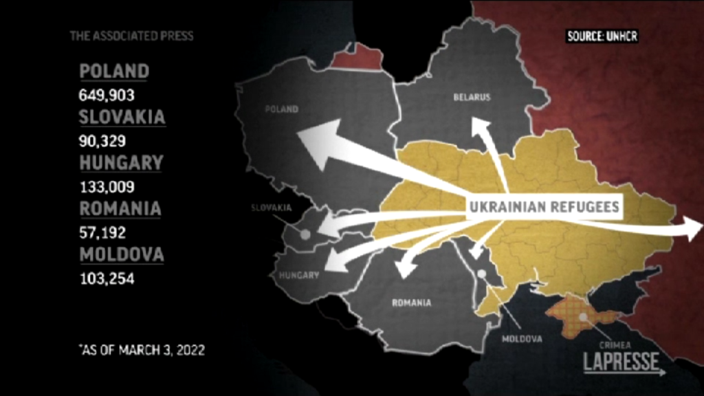 Le Nazioni Unite affermano che almeno un milione e 200mila persone sono fuggite dall’Ucraina dall’inizio dell’invasione russa lo scorso 24 febbraio. Ciò equivale a oltre il 2% della popolazione ucraina, anche se alcuni di coloro che fuggono sono cittadini di altri Paesi. La Russia ha riconosciuto che circa 500 soldati russi sono stati uccisi e oltre 1.600 sono stati feriti. Secondo il servizio di emergenza statale ucraino, più di 2.000 civili sono rimasti uccisi dai bombardamenti e dagli assalti delle forze russe.