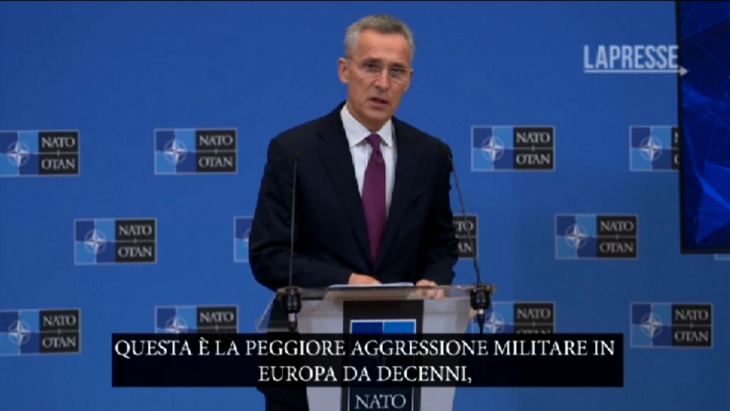 “Questa è la guerra del presidente Putin, quella che ha scelto, pianificato e sta conducendo contro un Paese pacifico. Chiediamo al presidente Putin di fermare questa guerra, immediatamente, di ritirare tutte le sue forze dall’Ucraina senza condizioni e di impegnarsi ora in una vera diplomazia”. Lo ha dichiarato il Segretario generale della NATO, Jens Stoltenberg, nella conferenza stampa al termine della ministeriale Esteri dell’Alleanza atlantica. “Questa è la peggiore aggressione militare in Europa da decenni, con città sotto assedio, scuole, ospedali ed edifici residenziali bombardati, azioni sconsiderate intorno a una centrale nucleare la scorsa notte e molti civili uccisi o feriti. È probabile che i giorni a venire siano peggiori, con più morti, più sofferenze e più distruzione, poiché le forze armate russe portano armi più pesanti e continuano i loro attacchi in tutto il Paese”, ha aggiunto Stoltenberg. “Avevamo avvertito per molti mesi che il presidente Putin era intenzionato a invadere l’Ucraina. Ecco perché gli alleati della NATO hanno compiuto sforzi instancabili per trovare una soluzione diplomatica. Allo stesso tempo, abbiamo chiarito che la Russia avrebbe pagato un prezzo molto alto per una rinnovata aggressione contro l’Ucraina. La Russia sta pagando quel prezzo adesso”.