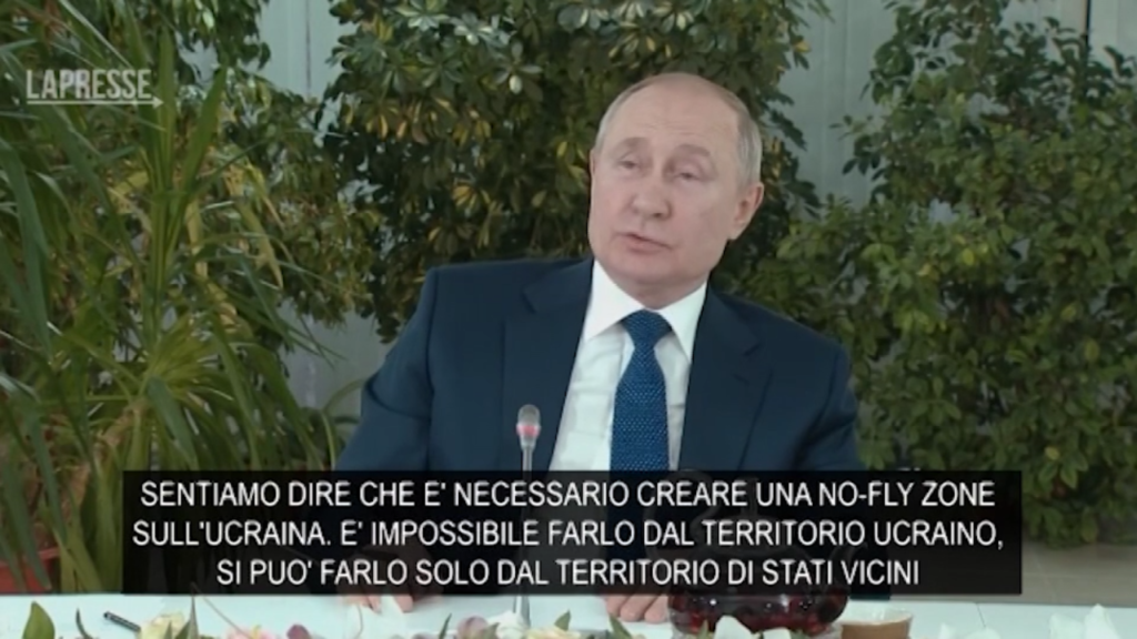 (LaPresse) – Il presidente russo Vladimir Putin avverte l’Occidente: “Sentiamo dire che è necessario creare una No-Fly Zone sul territorio ucraino. È impossibile fare questo dal territorio dell’Ucraina, è possibile solo dal territorio di alcuni stati vicini. Ma qualsiasi mossa in questa direzione sarà considerata da noi come partecipazione al conflitto del Paese dal cui territorio verranno create minacce ai nostri militari”, ha detto il capo del Cremlino in un incontro con l’Aeroflot. “Li considereremo immediatamente come partecipanti al conflitto. E non importa di quali organizzazioni siano membri”, ha aggiunto Putin.