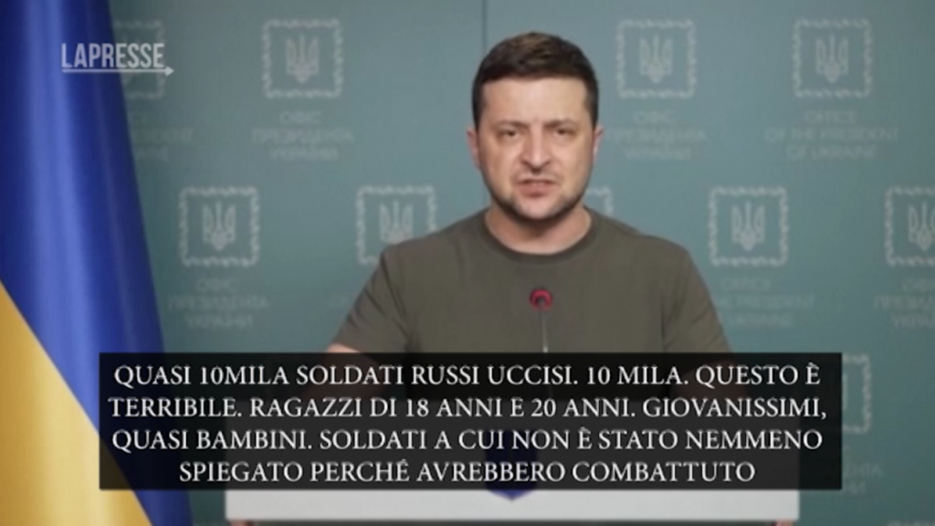(LaPresse) “Stiamo infliggendo perdite agli occupanti, come non le potevano prevedere nei loro peggiori incubi, 10mila soldati russi sono stati uccisi in 10 giorni di guerra: ‘questo è orribile’, si tratta di “giovani di 18, 20 anni, soldati cui non è neppure stato spiegato per cosa avrebbero combattuto”. Così il presidente ucraino, Volodymyr Zelensky aggiungendo: “I corridoi umanitari devono funzionare già da oggi”.
