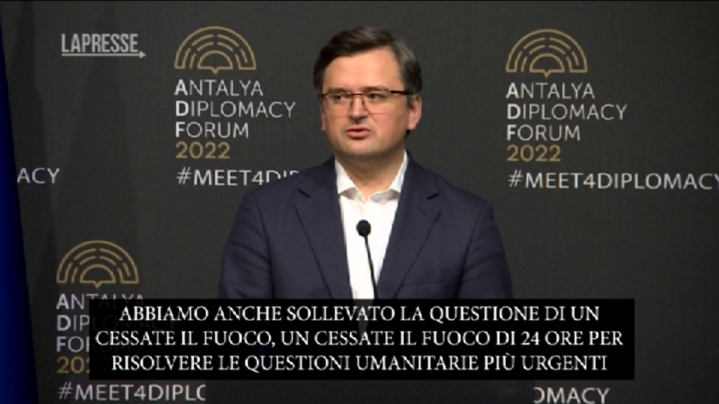 (LaPresse) “Abbiamo anche parlato di un cessate il fuoco di 24 ore per risolvere le questioni umanitarie urgenti ma non abbiamo fatto progressi” su questo. Lo ha detto il ministro degli Esteri ucraino, Dmytro Kuleba, in conferenza stampa ad Antalya, in Turchia, dopo i colloqui con l’omologo russo, Sergei Lavrov. “Sembra – ha aggiunto – che ci siano altre persone che decidono su questa questione in Russia. Ci siamo accordati su uno sforzo per cercare soluzione a questioni umanitarie”. “Siamo pronti a cercare soluzioni diplomatiche ma non ci arrenderemo”, ha concluso Kuleba.